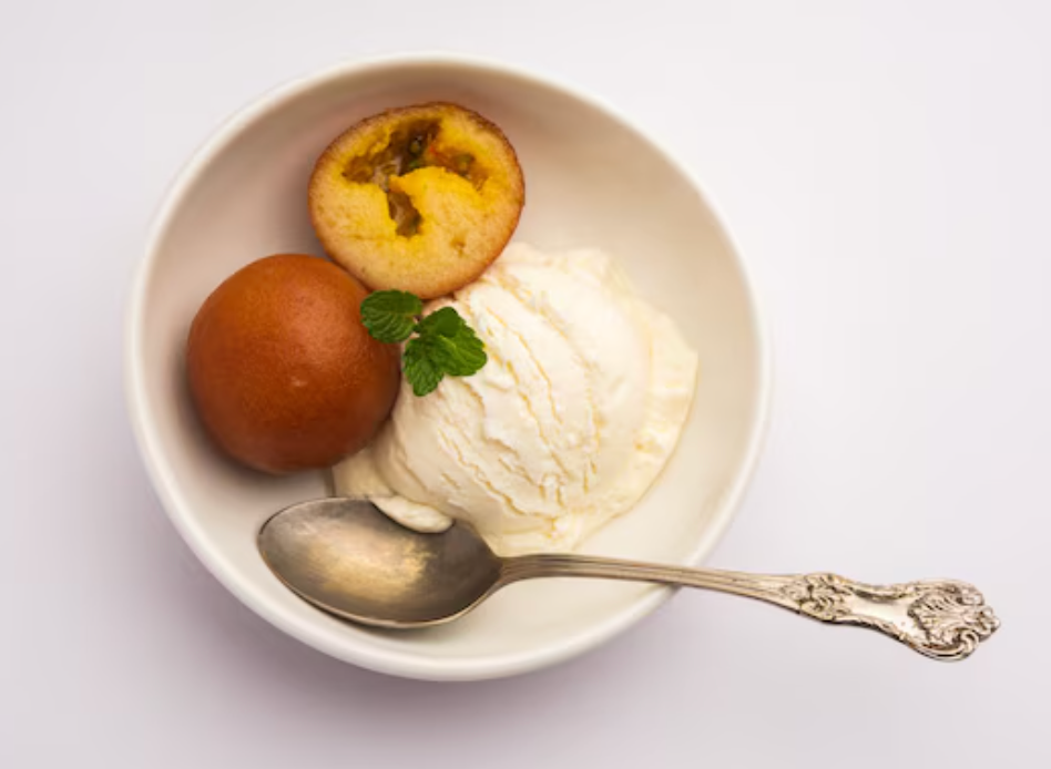 Gulab Jamun (1pc) served with choice of Ice Cream.