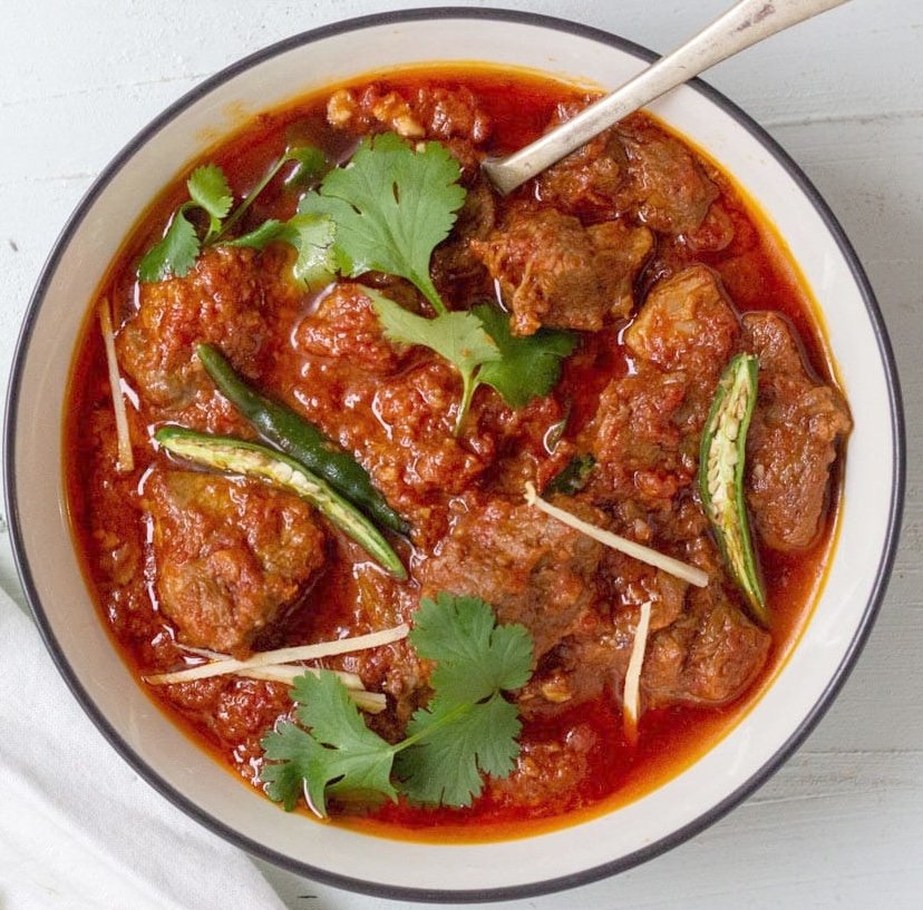 Traditionally spiced lamb curry cooked with fresh herbs, capsicum, ginger, tomatoes, and spices.