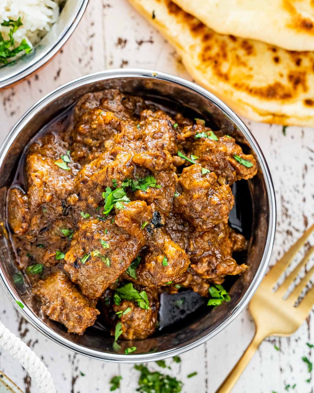 Simmered lamb in onion and tomato base touched with cream, exotic spices and cashew nut paste.